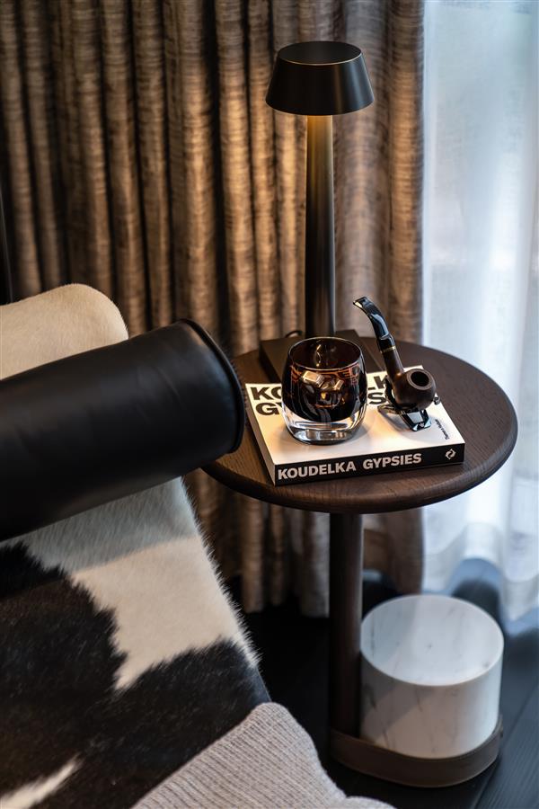 茶室內(nèi),幾株清雅綠枝,與畫中的自然相呼應(yīng),搭配風(fēng)鈴般的纖細(xì)燈飾、樸拙麻布,鋪設(shè)一種溫潤端雅的姿態(tài)。而花紋大理石的嵌入,又令這里透著幾分時尚的混搭之美?!安痪杏趥鹘y(tǒng),是我們對這一方休閑場域的設(shè)想,藏于都市的它,是放松身心的閑曠之地,也能自信有度地傳達(dá)居者的個性態(tài)度?!?/p>