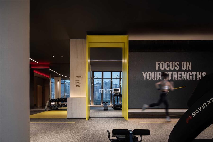 不拘于空間本身,而是通過設(shè)計語言,傾注更多情緒與溫度,沉浸式喚起人的身心感知,是設(shè)計師力圖在「有氧部落」中實現(xiàn)的要義。釋放活力基因的檸檬黃、升華格調(diào)的power燈飾、質(zhì)感十足的健身器械,所帶來的不止是硬件標準的升級,更于細節(jié)匠造間,呼應(yīng)社區(qū)圈層的價值品味,彰顯躍進的時代潮流。