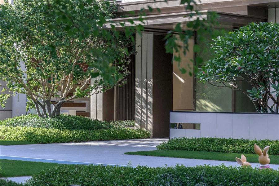 穿過涼風(fēng)習(xí)習(xí)的樹陣,眼前乍現(xiàn)的主入口空間極具儀式感,信步拾級(jí)而上,涌泉相迎,綠植旁逸。高差景觀的變化,搭配造型優(yōu)美的喬木,以及修剪整齊的綠籬,整體給人豐富的層次感。