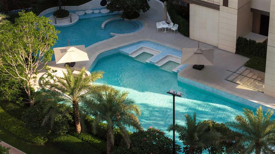 結(jié)合架空層設(shè)計(jì)的酒店式泳池,塑造度假氛圍感,營造獨(dú)特休閑一隅,提高整個(gè)社區(qū)的居住品質(zhì)。分齡式的泳池設(shè)計(jì),兒童成人分區(qū)的構(gòu)建和親子互動(dòng)體系,具備人性化,使得每個(gè)年齡層的家庭成員皆可體驗(yàn)度假氛圍。