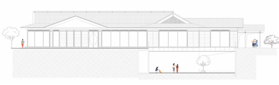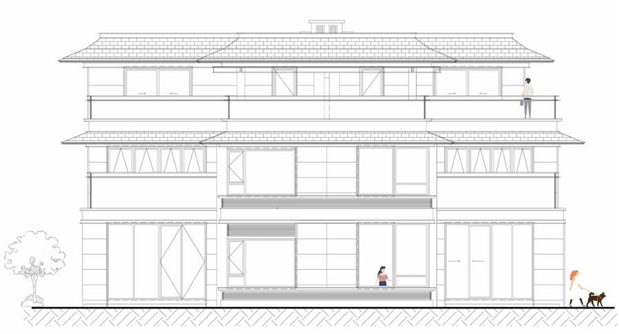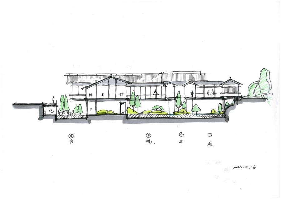造一幅可游、可行、可望、可居的溪山行旅空間,轉(zhuǎn)譯山居雅集的新生活范式,在面向西南側(cè)的城市界面,再這里造一處在山水石里長(zhǎng)出的房子,融于山中的房子,一處到達(dá)即行旅、生活即雅集的山居。
