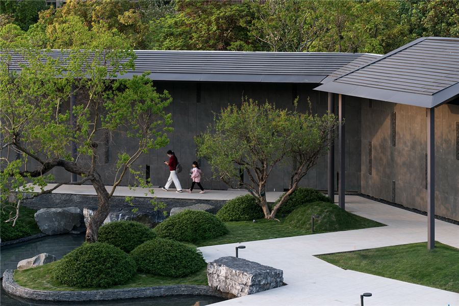 與自然共棲,融于山水的美學(xué)館不是某一棟宋代建筑的復(fù)古。建筑空間、室內(nèi)空間、景觀空間、“灰空間”以及檐下空間,承載了現(xiàn)代風(fēng)雅的生活,打造生活場(chǎng)域氛圍,一個(gè)供居者可游、可行、可望、可居山水之間的西園雅集圖,亦是從物質(zhì)空間到人文、精神空間的升華。