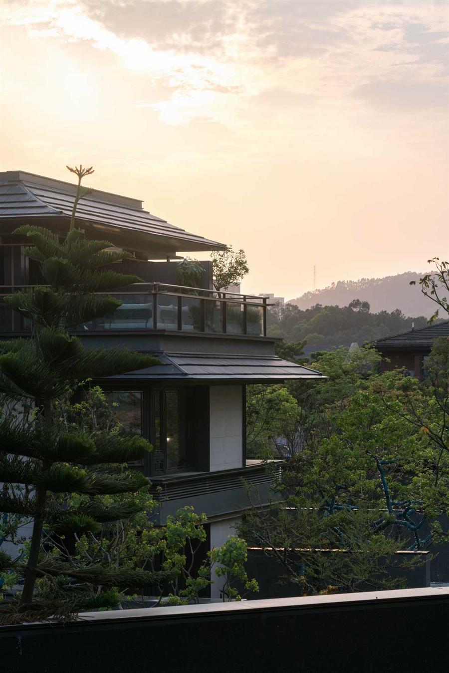 在現(xiàn)場(chǎng)勘察之初,他本身就已經(jīng)具備了山湖相依的資源條件,我們探討用幾何虛實(shí)與山水交織構(gòu)建一幅干凈簡(jiǎn)約隱于自然的場(chǎng)所,我們圍繞的關(guān)鍵詞是:溪山行旅、邊界消融、生態(tài)之上、掩映之美,前庭后院等等。通過(guò)多輪探討我們順應(yīng)地勢(shì),打造了一個(gè)8m高差的溪山行旅園,將建筑與自然鏈接這是第一步。