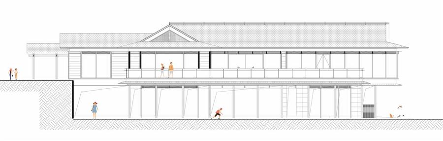 粗糲的自然之野與精工的連廊形成一種質(zhì)感的對(duì)撞反差。廊亭是給社區(qū)的人們提供休閑休憩的公共場(chǎng)所,兼?zhèn)淞苏g活動(dòng)的會(huì)客、游林、童趣、康養(yǎng)、鄰里、觀瀑、科普等功能體驗(yàn)。