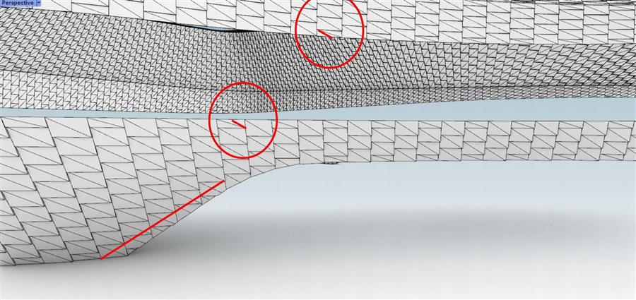 設(shè)計團隊用頂面,斜面,垂面三個曲面重新梳理了上部立面的造型邏輯。設(shè)計方案讓三面在兩館之間發(fā)生扭轉(zhuǎn),面與面之間肥瘦相間,釋放了視覺張力。得益于新的造型使用更多的直線加倒角,三維非標(biāo)曲面占比降低,造價得以降低。同時,與一期的體育館造型也更加協(xié)調(diào)。