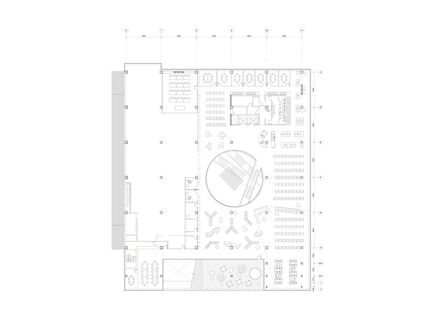 除了主要的圓形劇場,使用者還可以進(jìn)入音樂工作室和幾個(gè)練習(xí)室,一個(gè)放映室,一個(gè)fab實(shí)驗(yàn)室和一個(gè)藝術(shù)工作室。這個(gè)豐富的項(xiàng)目將使圖書館從一個(gè)安靜的書庫變成一個(gè)真正的社交中心,一個(gè)真正的“第三空間”,適應(yīng)其多樣化和不斷變化的社區(qū)。