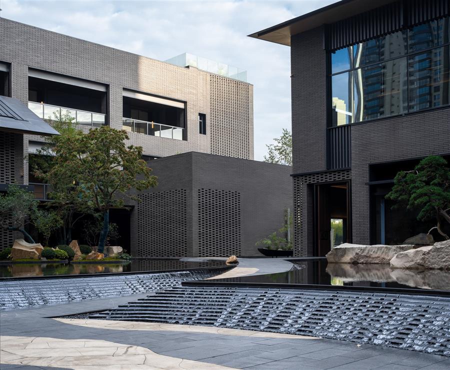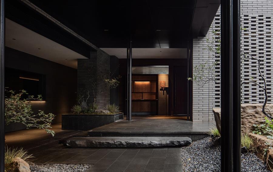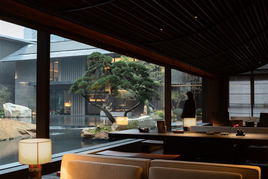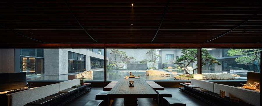 為了打破傳統(tǒng)酒店的內(nèi)廊式布局,我們將酒店公區(qū)體量化整為零,打散為大小不一的屋舍,以庭院交織。在旅客面前展開的這個山水畫卷,不僅是一個平面的觀賞對象,更是一個可深入探尋的村落空間。