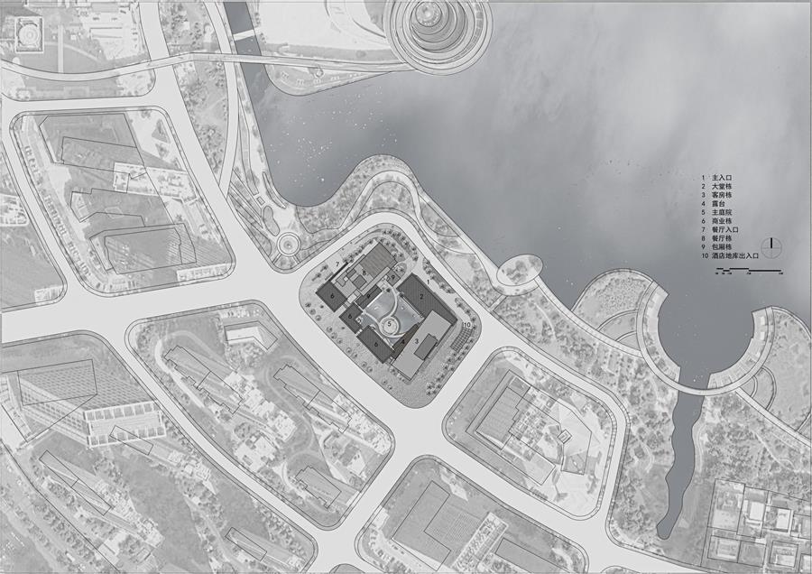 梅溪湖·韋爾斯利酒店位于長沙市梅溪湖國際新城,與扎哈遺作梅溪湖藝術(shù)中心遙相呼應。梅溪湖是長沙開發(fā)強度最高的片區(qū),濱湖遍布容積率4.0-6.0的超高層住宅與酒店,作為梅溪湖片區(qū)最后的一個濱湖酒店,我們提出應該在建筑設計層面,推出一種區(qū)別于超高層酒店的新選擇,為梅溪湖同質(zhì)化嚴重的商務酒店中,提供一種差異化的新體驗。