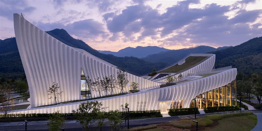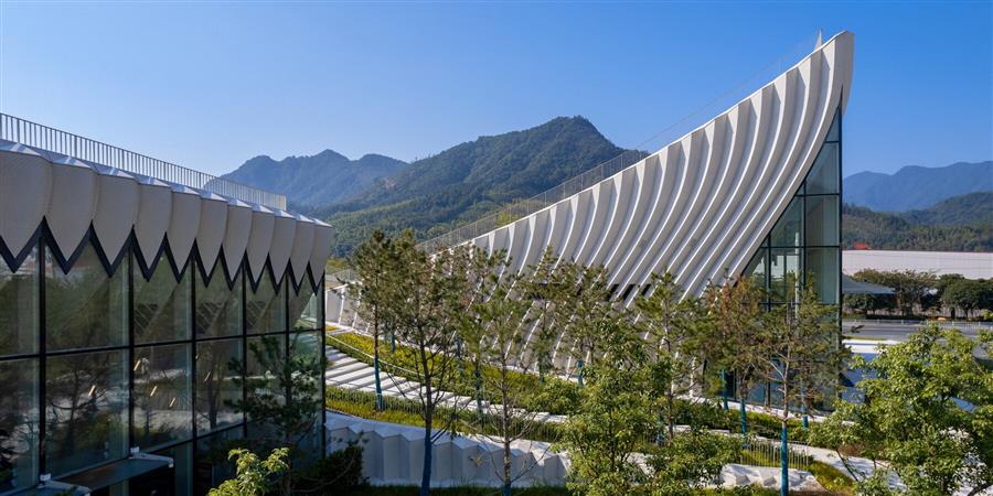時境建筑設(shè)計的陽光博物館將建筑融入自然,這是一個引人注目的地標,位于中國福建武夷山青翠的山麓。該博物館為中國食品品牌Sunner Group設(shè)計,標志著四十年的農(nóng)業(yè)創(chuàng)新,作為知識中心和公共空間。該建筑位于廣澤縣公司的生態(tài)工業(yè)基地內(nèi),建筑以三個互鎖的弧形屋頂形式反映了地形,屋頂從地面上升起,就像山脈的延續(xù)。