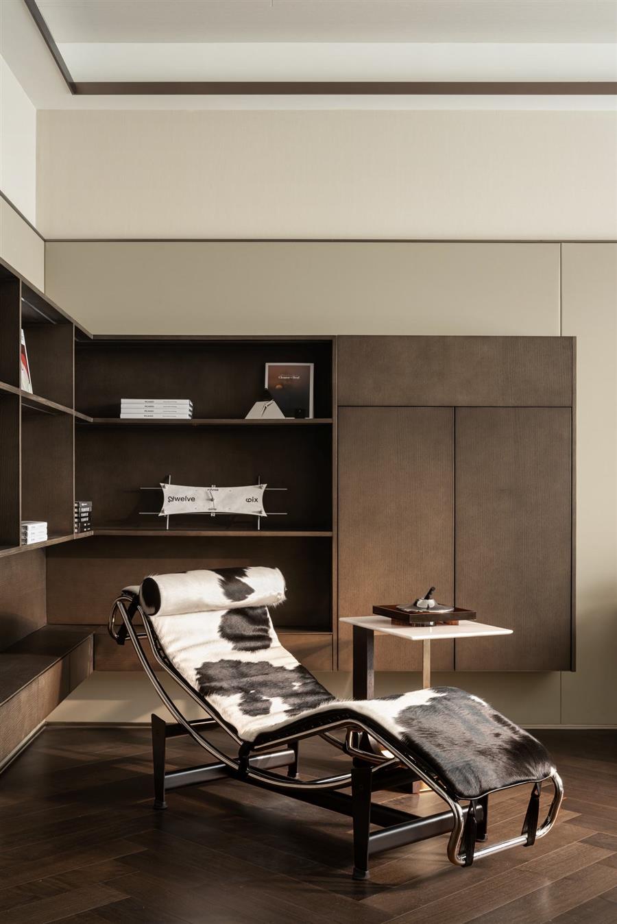 以會(huì)客區(qū)為中心,通過奢石紋理向外蕩開,皮質(zhì)沙發(fā)、休閑椅的安置不僅賦予流線型姿態(tài)又借用軟裝功能將開敞的一樓區(qū)域進(jìn)行無形的分割。半圍合感的設(shè)計(jì)搭配全透玻璃環(huán)繞,對(duì)景戶外的自然映像,形成一個(gè)靜謐舒適的自由會(huì)客區(qū),休閑而隨性。