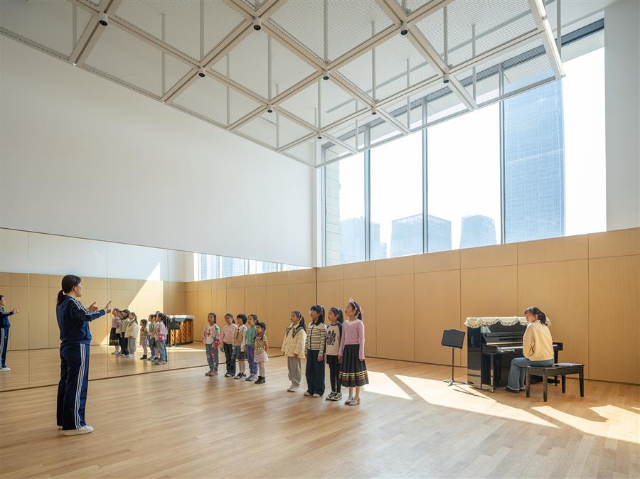The West Bund Grand Theater is one of the district's anchor art venues, accommodating a 1,600-seat main auditorium and a 200-seat intimate black-box theater for experimental performances.