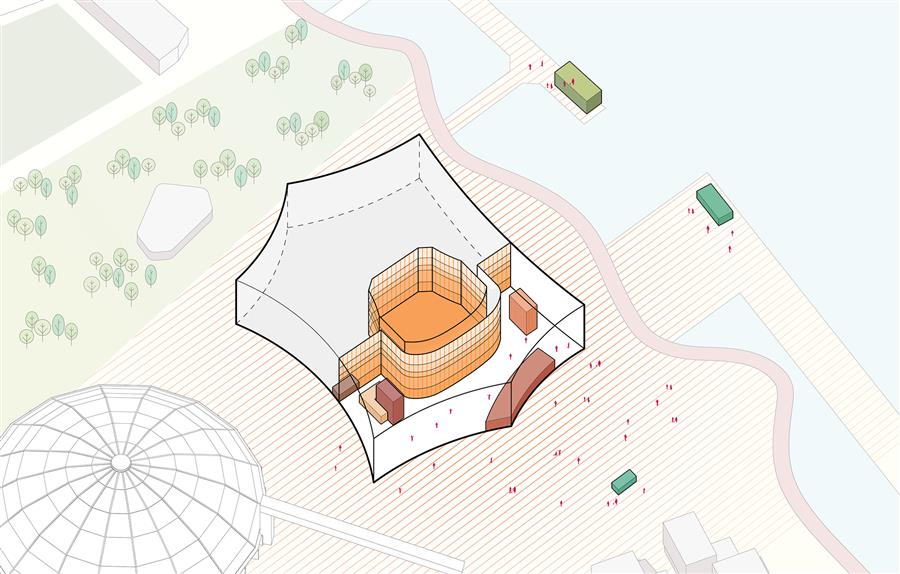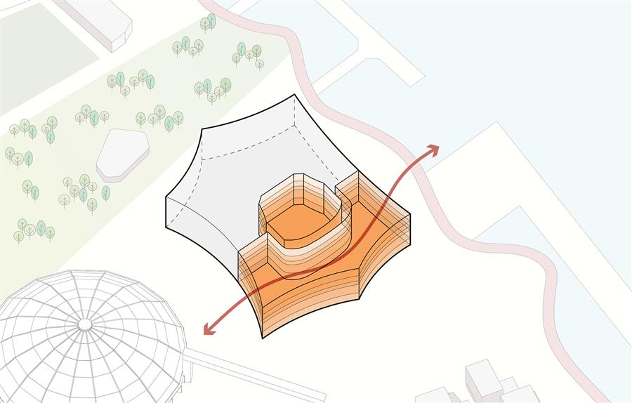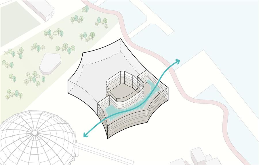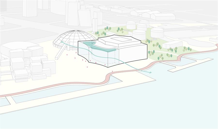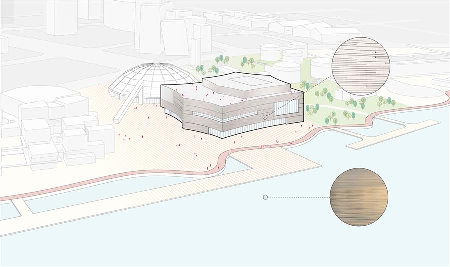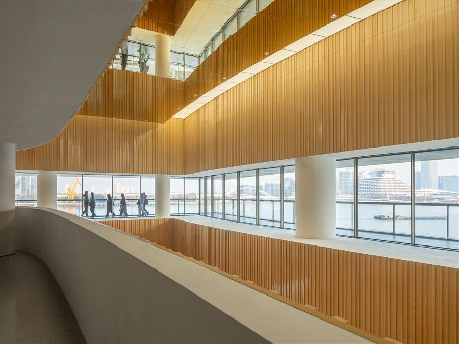 “黃浦江對上海至關(guān)重要,”SHL建筑事務(wù)所設(shè)計總監(jiān)Chris Hardie說道,“項目能夠落位于江畔實屬難得。在此你可以真切感受到黃浦江的繁忙,永不停歇,始終流淌,承載著與劇院體量相仿的船只緩緩前行。每當(dāng)你漫步江畔,江水都極具震撼力,我們希望西岸大劇院也能展現(xiàn)這種力量?!?/p>