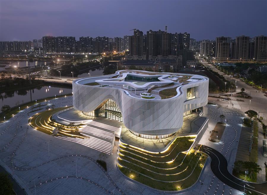 Located on the north side of Moyang Lake Park in Yangjiang City, the comprehensive cultural center enjoys a beautiful environment and wide view. The project integrates multiple institutions and functions such as the Archives Center, the Party History Museum, the Local Records Museum, Hall of Fame, museum, planning hall and the Workers' Cultural Palace. It injects vitality into the surrounding communities and has become a cultural landmark in the new urban area of Yangjiang City.