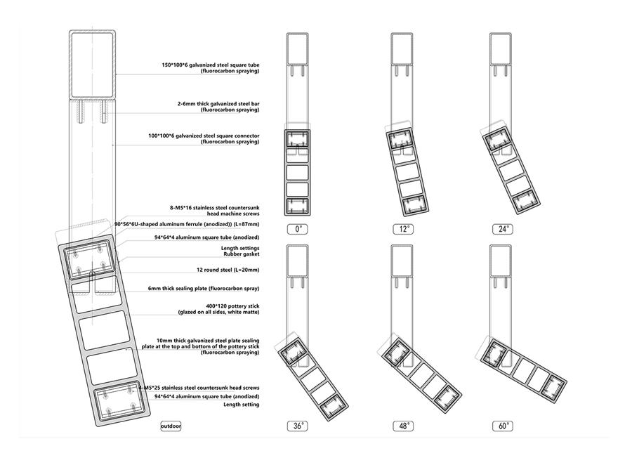 3. Passive building with parametric design - Taking into account the characteristics of the subtropical coastal region with high solar radiation and hot and humid climate, the scheme adopts a number of passive building design measures to reduce the energy consumption of the building operation, specifically involving the following aspects: The vertical sunshade pottery rod for the facade is a major and difficult point in the project design. The principal creation team design a large composite pottery rod sunshade system with an 900 patent. Combined with the simulation calculation of the sunlight exposure angle and radiation intensity of the facades in all directions of the building, the project adopts parametric positioning control to make the pottery rod form different angles and height changes on the facades, so as to achieve the best sunshade, heat insulation and lighting effects in all directions.