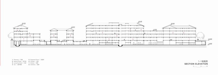 古城的活力介入山水意境的中醫(yī)院,中醫(yī)院在協(xié)調(diào)傳統(tǒng)風(fēng)貌的同時(shí),以現(xiàn)代建筑語匯重新詮釋,形成一種豐富多元的生態(tài)。