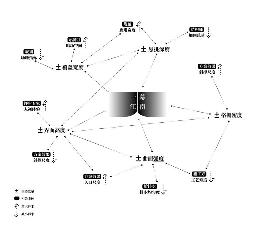 該項(xiàng)目位于江蘇省周莊市的入口處,將一座長(zhǎng)期空置的2003年酒店建筑群改造成沉浸式劇場(chǎng)空間,上演由周莊鎮(zhèn)政府和中國(guó)東方演藝集團(tuán)聯(lián)合制作的《只此周莊》。EPC合同由中國(guó)美術(shù)學(xué)院風(fēng)景建筑設(shè)計(jì)研究總院負(fù)責(zé),余丁宗工作室承擔(dān)項(xiàng)目總設(shè)計(jì),而猜一建筑團(tuán)隊(duì)負(fù)責(zé)立面的設(shè)計(jì)與深化工作。