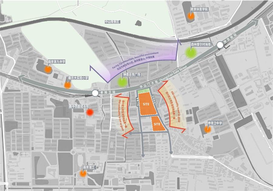 項(xiàng)目基地位于南京市玄武區(qū)鐘山風(fēng)景名勝區(qū)東南腳下,緊鄰鐘山風(fēng)景名勝區(qū)(明孝陵景區(qū)、中山陵風(fēng)景區(qū)等),周邊學(xué)校、醫(yī)院等配套服務(wù)設(shè)施齊全,距離孝陵衛(wèi)地鐵站僅400米,交通便利。