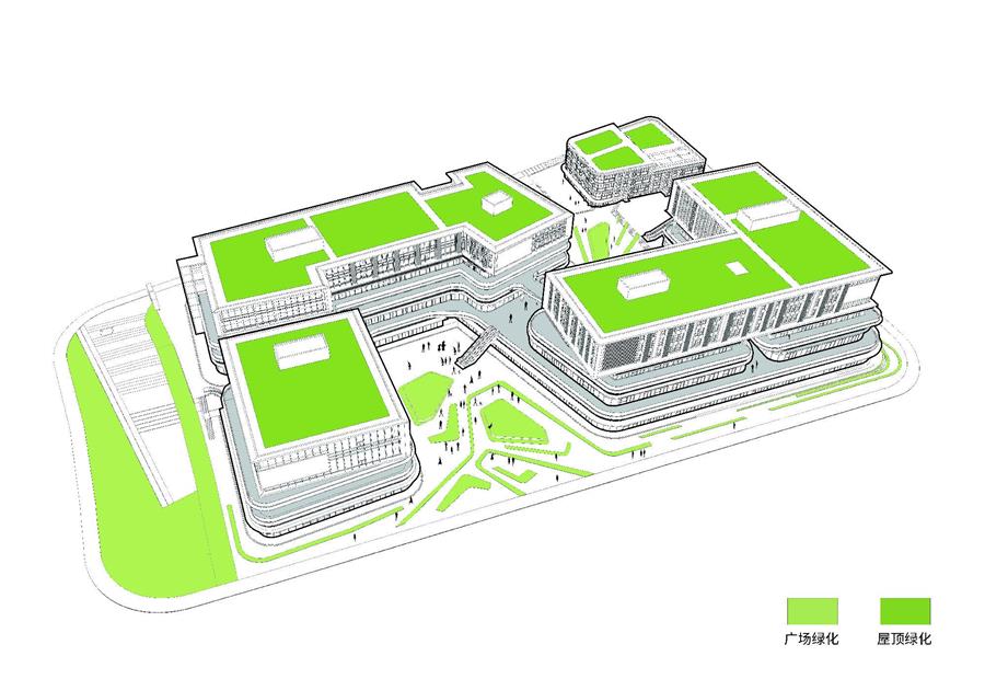 同時(shí)在高差兩端,自然而然形成兩個(gè)外向型市民廣場(chǎng),并植入連續(xù)、個(gè)性、空間有序的廣場(chǎng)主題。開放式的停留區(qū)域?qū)⑹忻竦摹盁熁饸狻鄙顖?chǎng)景融入,在彌補(bǔ)基地周邊公共活動(dòng)空間的不足的同時(shí),提升整體商業(yè)活力,實(shí)現(xiàn)社會(huì)價(jià)值。三四層的內(nèi)廊式商業(yè),與底層商業(yè)布局相同,進(jìn)一步增加廣場(chǎng)的聚合性。