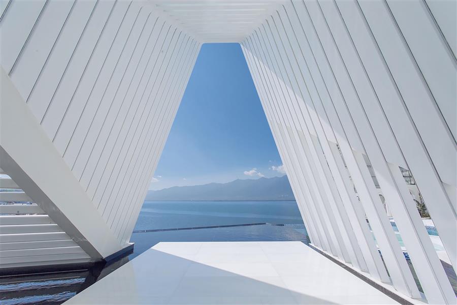 改造設(shè)計(jì)還原這樣的景觀意向,讓建筑如“玉帶云”般蜿蜒漂浮。由此將建筑景觀化,融入山腰之中;同時(shí)建筑作為景觀的容器,空間上與蒼山、洱海對(duì)景。