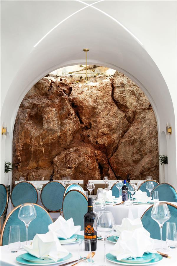 ▲ 裸露的天然紅巖成為餐廳空間背景  ?LC?studio