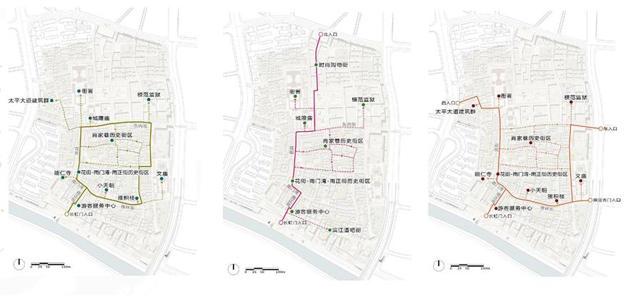 延續(xù)歷史街道網(wǎng)絡和肌理。以保留、編織的手法,重塑古城的空間形態(tài),體現(xiàn)場所精神