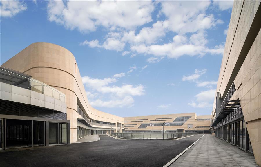 場地西側緊鄰上海外環(huán)高速,南側為城市鐵路。設計希望在高架和鐵路上飛馳而過的時候,進入大眾視野的是一片獨特和優(yōu)雅的園區(qū)建筑,在城市形象上樹立園區(qū)良好的品牌形象。