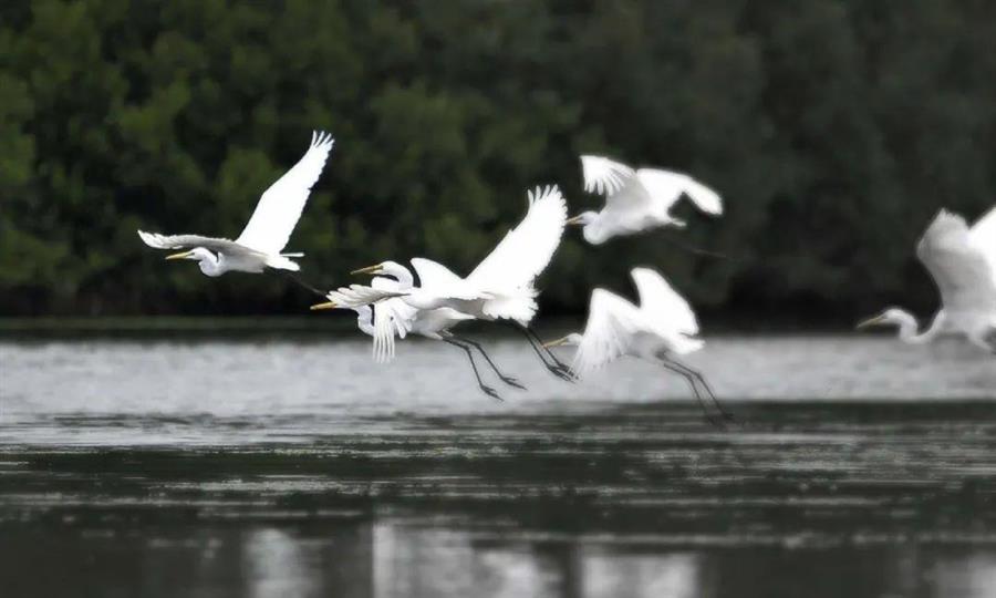 ▲ 沙盤區(qū)的白鷺陣列 攝影:吳清山