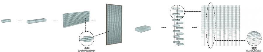 值得一提的是技術(shù)與藝術(shù)完美結(jié)合的風(fēng)動幕墻,以宋代水墨畫為藍(lán)本,借鑒日本狩野派屏障畫的構(gòu)圖特色,這種畫面空間不被邊界局限的構(gòu)圖手法,暗示出空間的擴張性和連續(xù)性。