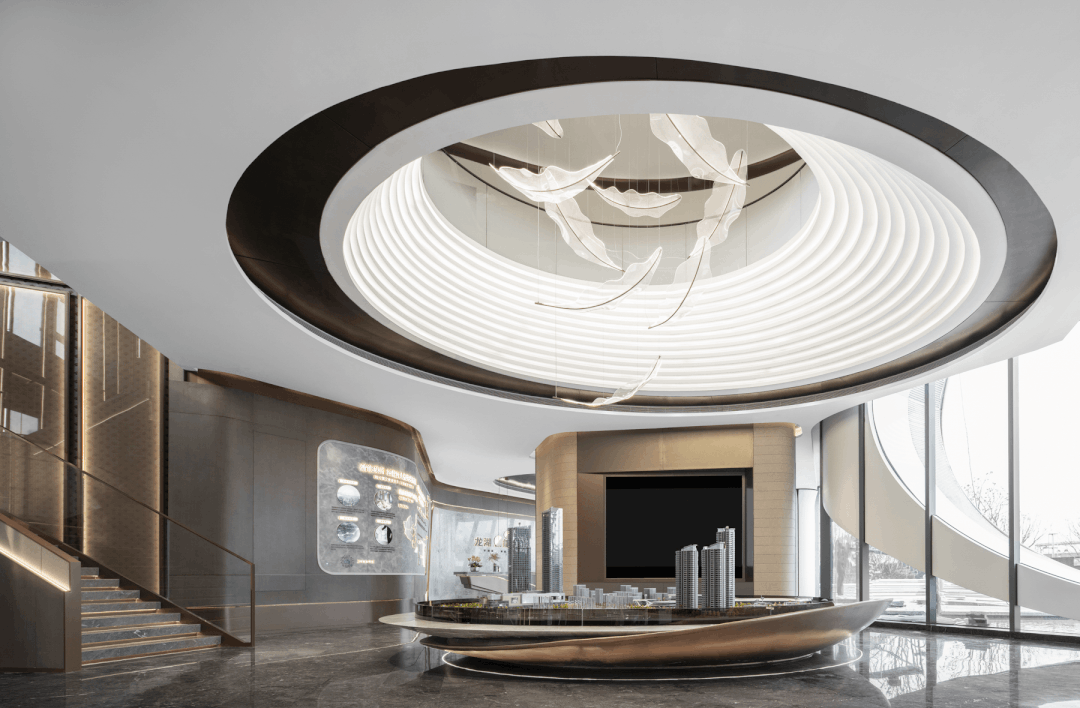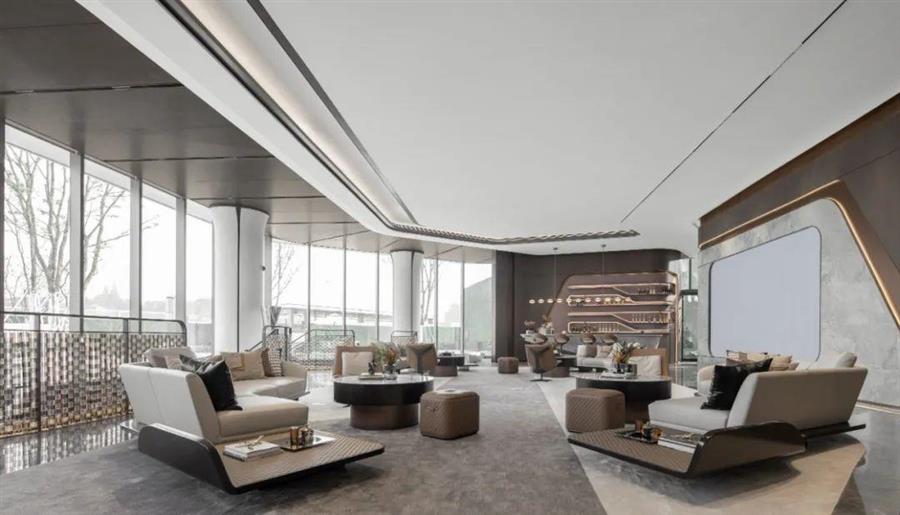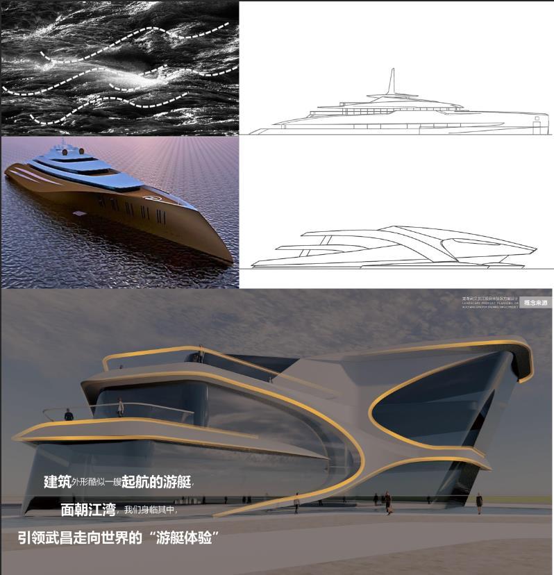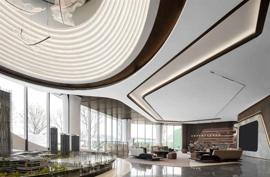 引“江流之勢(shì),游艇之奢”,形意結(jié)合,建筑抽象出武漢江水曲線的柔美,創(chuàng)造出動(dòng)感流暢、富于張力的形態(tài);將客戶的體驗(yàn)延展向未來,將無限的遐想隱于其中,身臨其境,品味這場(chǎng)引領(lǐng)武昌走向未來的“游艇體驗(yàn)”。