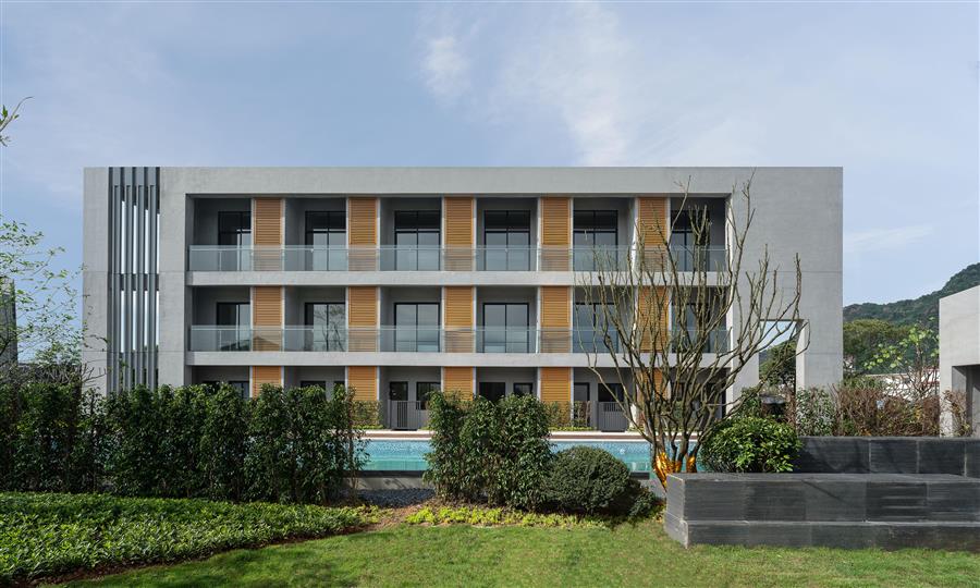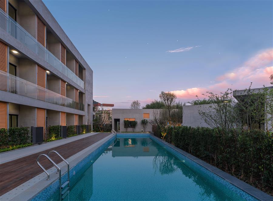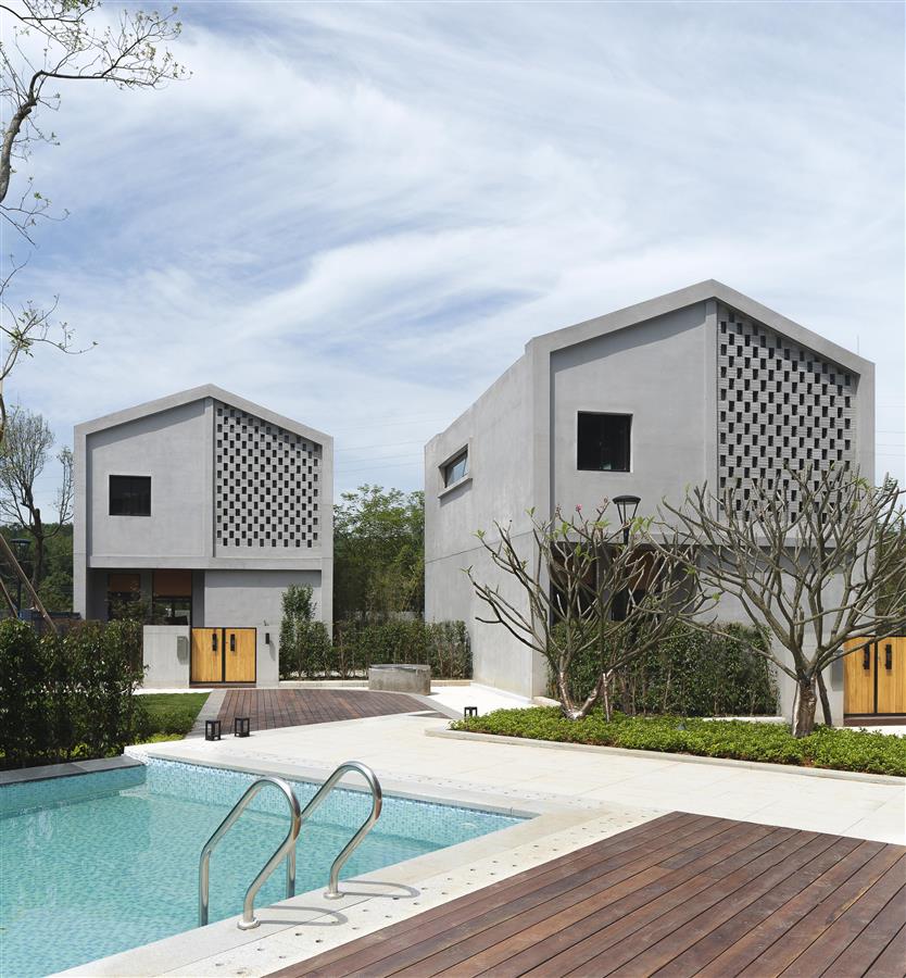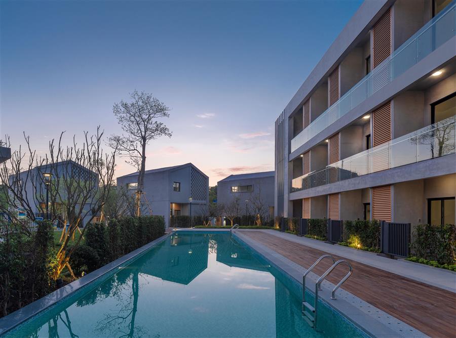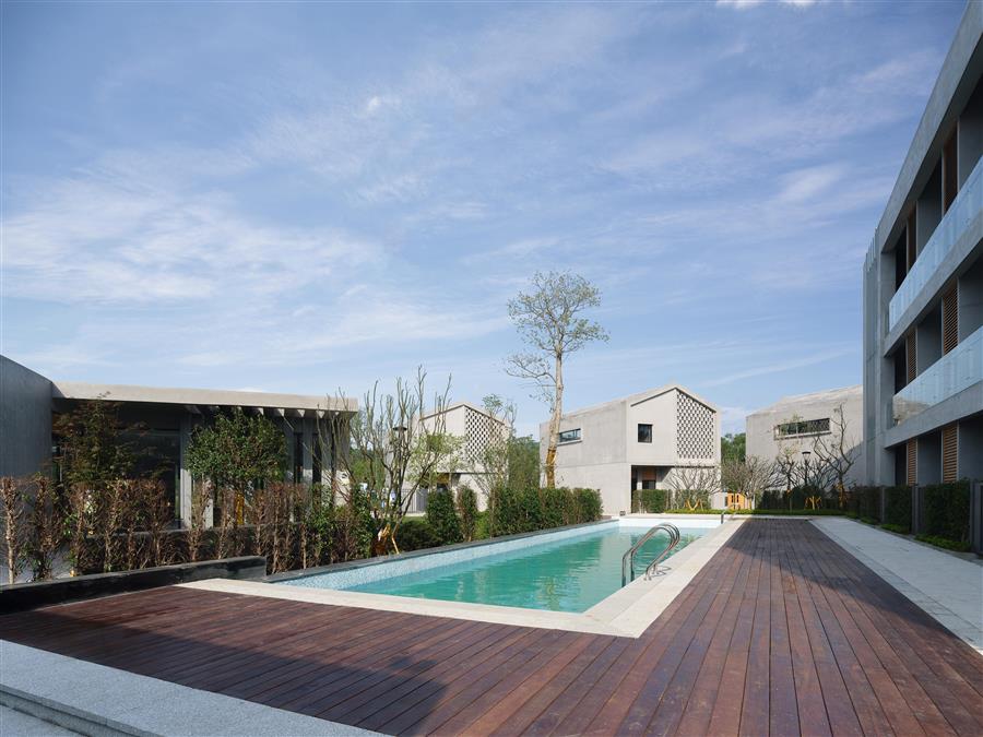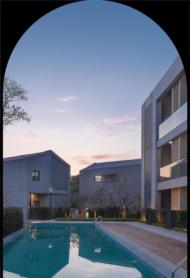 圍合的院落內(nèi)布置有露天泳池,是庭院靜謐環(huán)境的一注活力元素。