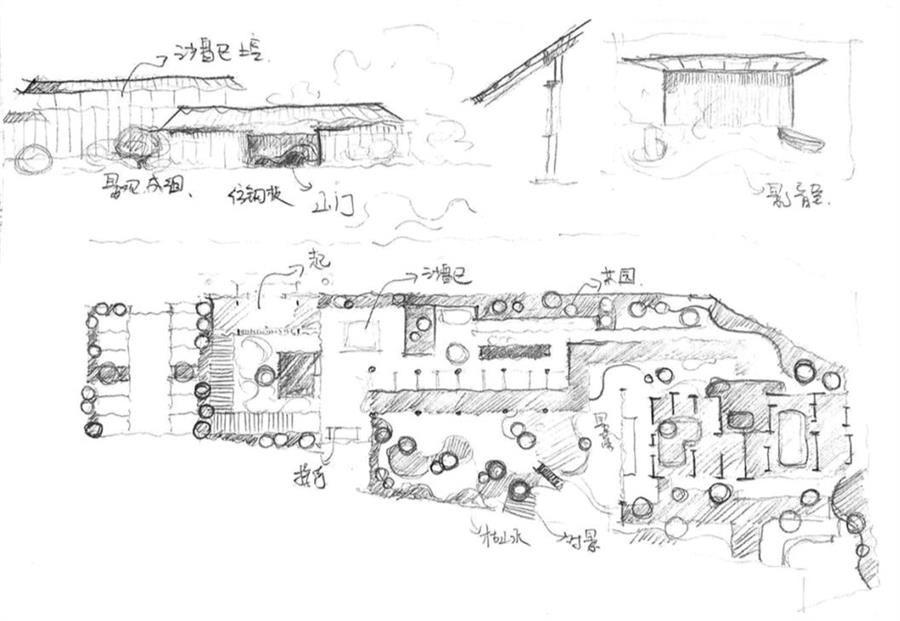 洽談區(qū)的空間序列開始產(chǎn)生變化,園中有屋,屋中有院,空間時(shí)而開敞時(shí)而封閉,時(shí)靜時(shí)動(dòng),建筑、景觀多層次疊加滲透,蘊(yùn)涵著“移步異景”的意味。