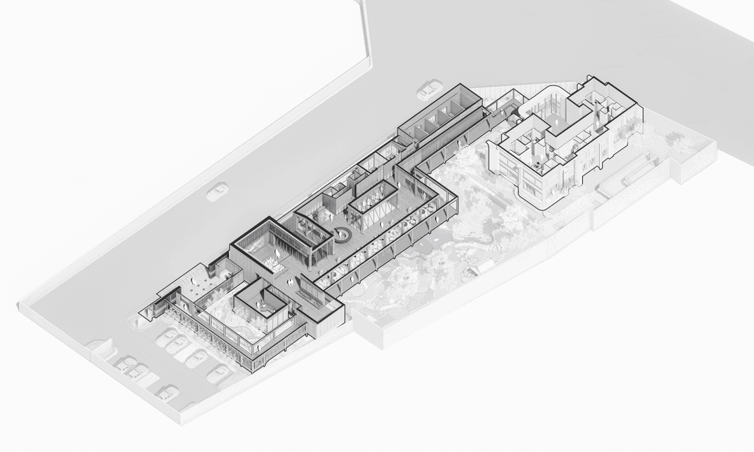 本案位于北京東三環(huán)分鐘寺,與CBD片區(qū)相近,是東部三環(huán)的核心板塊,坐擁優(yōu)越的地理?xiàng)l件。但因其歷史原因,現(xiàn)狀較為復(fù)雜,設(shè)計(jì)考慮以“內(nèi)向造景,境由心生”為思路進(jìn)行破題。