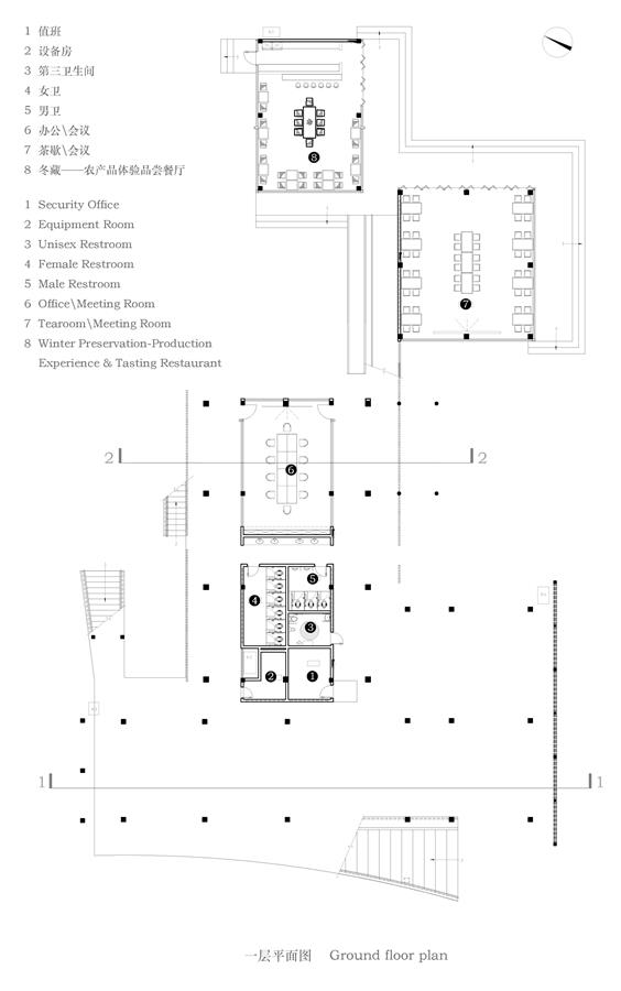 “歸還”是展示中心設計之初確定的核心建筑策略,大部分建筑底層架空,將底層空間歸還給自然和參與其中的人們。底層架空的設計為后續(xù)很多有趣的設計奠定了良好的基礎,田壟院子、空中庭院、入口廊橋、屋頂撒歡……等等