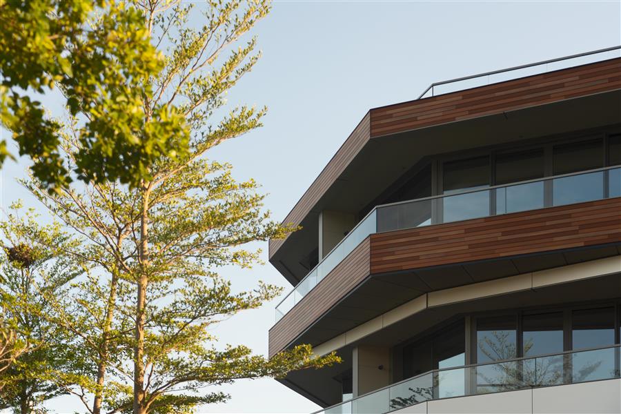 ▲ 立面采用木材搭配白色鋁板