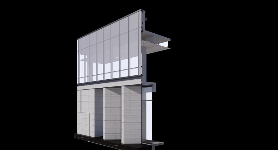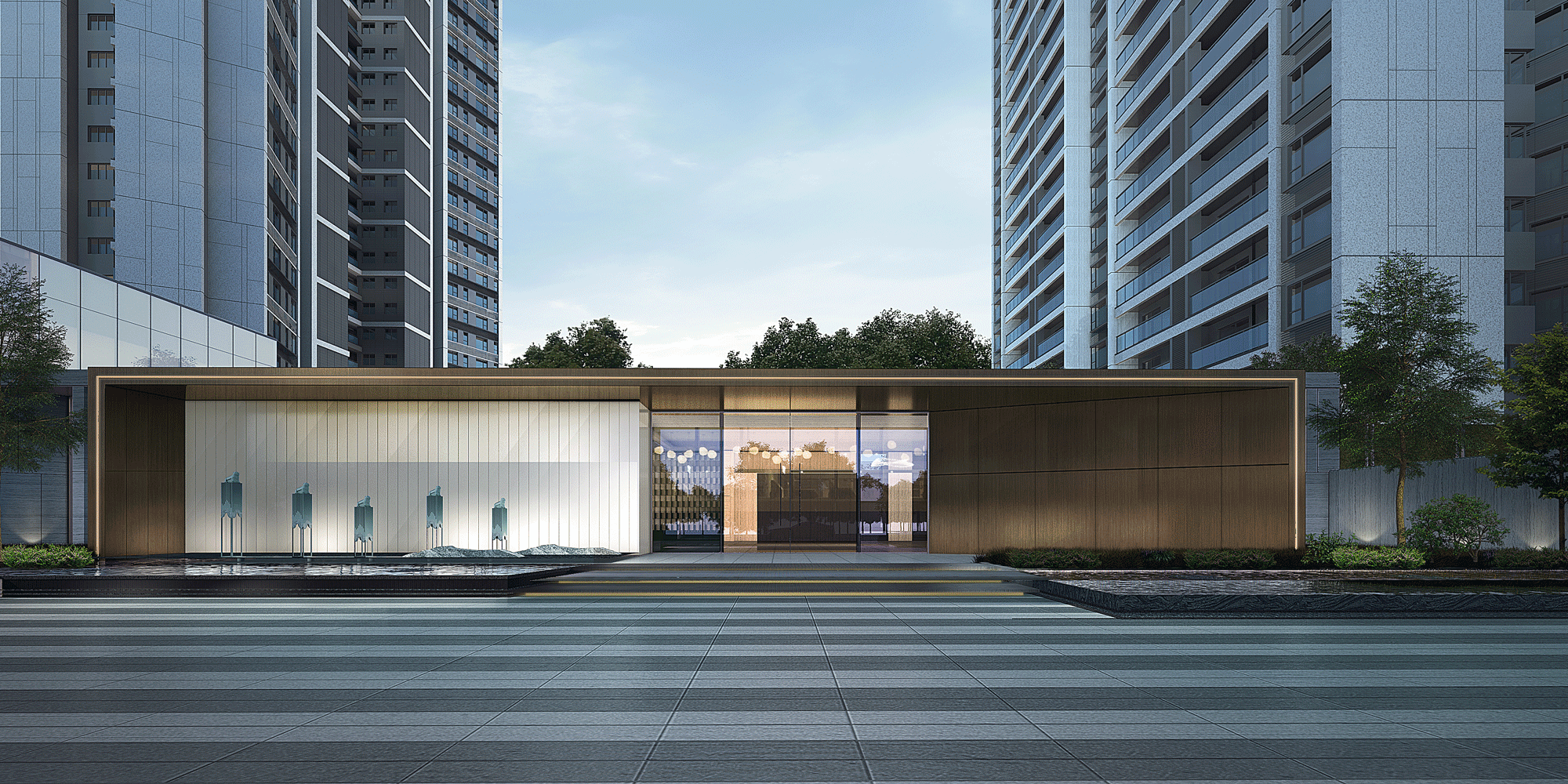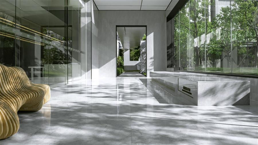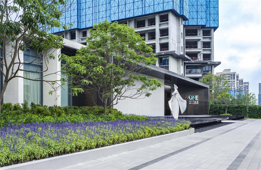 在街角塑造一個(gè)趣味的公共藝術(shù)空間,通過(guò)前區(qū)引導(dǎo)到達(dá)城市展廳,穿越展廳呈現(xiàn)在眼前回事一幅內(nèi)心復(fù)線的城市山林居所,人、景、筑三者恰為其中,相得益彰。