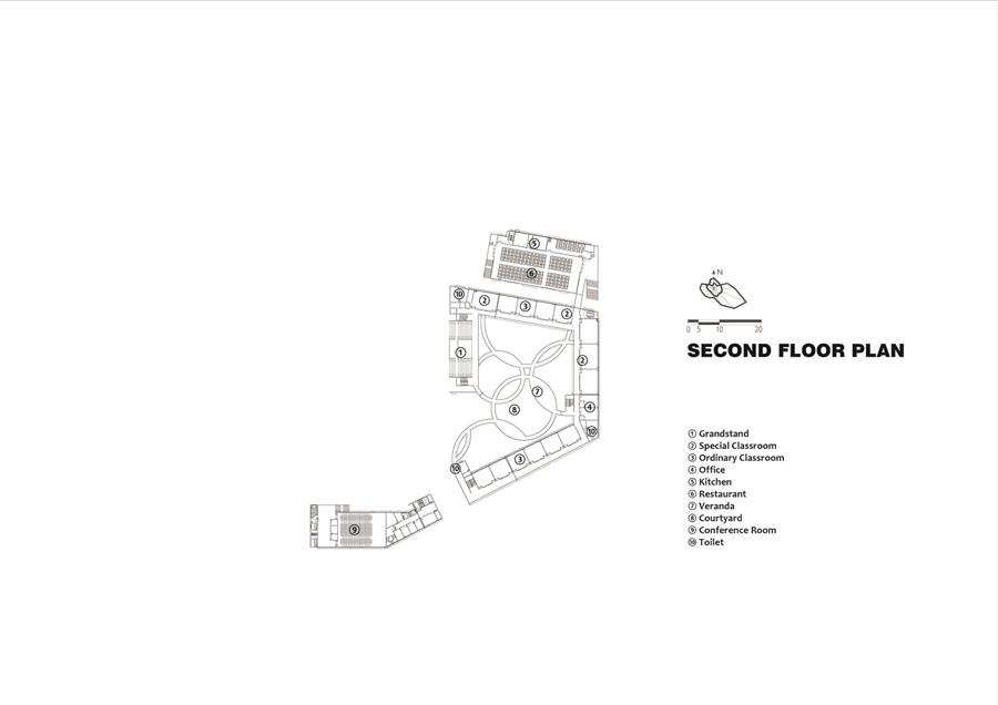 其次,屋面由原來消極和分離的部分,成為校園最具標(biāo)志性的元素,在容納更多的教學(xué)活動(dòng)的同時(shí),塑造了校園的獨(dú)特形象。教與育,就在這種變化和交流中自主的發(fā)生。開放性和公共性在圍合的建筑體內(nèi)自然蔓延,或平滑展開,或轉(zhuǎn)折深入。由于公共活動(dòng)的介入,建筑體也隨之產(chǎn)生了相應(yīng)的變化,自然而生,隨形而動(dòng)。