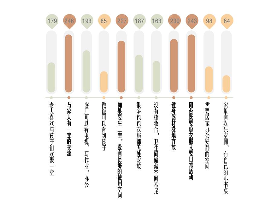 云萃府項(xiàng)目開始之前,我們花費(fèi)了三個(gè)月的時(shí)間,針對南京改善型市場進(jìn)行了充分的調(diào)研,走訪了多個(gè)樓盤,通過近1000 小時(shí)的客戶訪談錄音,了解家庭成員的生活場景痛點(diǎn),解讀客戶對居住空間的功能需求和情感需求。