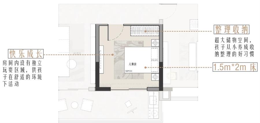 云萃府在兒童房的設(shè)計(jì)上留有一定的拓展空間,根據(jù)家庭的實(shí)際需求進(jìn)行空間的拓展和變化。
