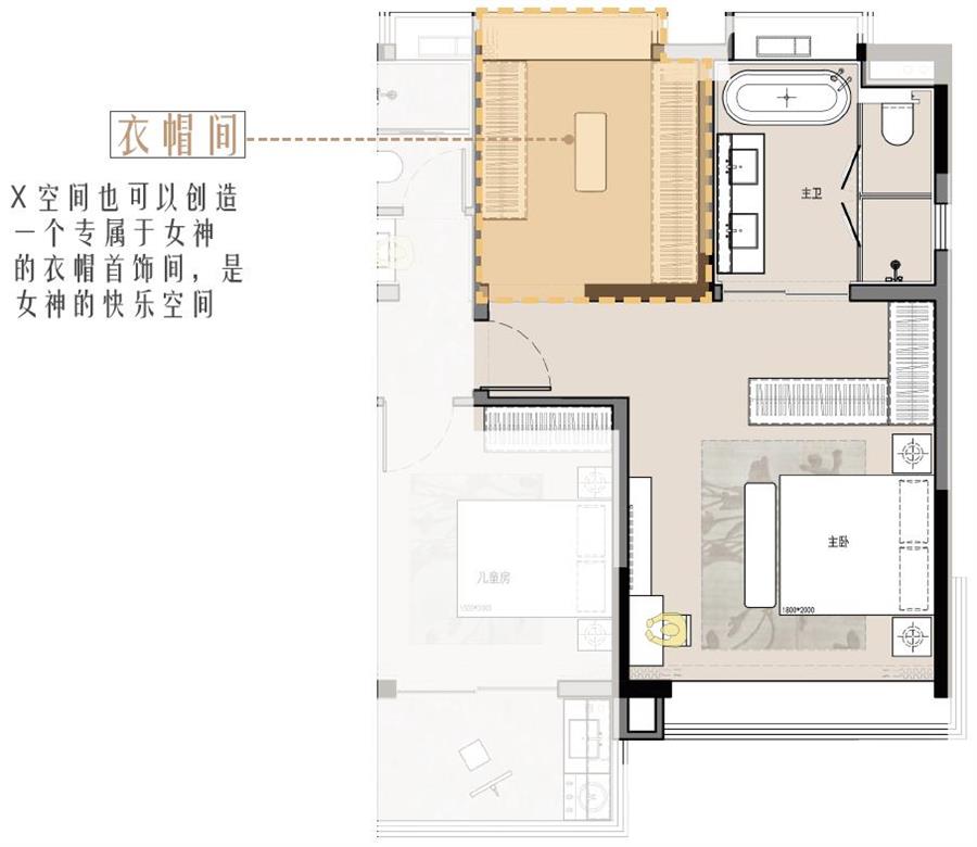 云萃府:增大主臥各個(gè)空間的尺度,贈送轉(zhuǎn)角飄窗,提高空間使用的幸福感與舒適度,同時(shí)設(shè)有X 空間,可根據(jù)戶主的不同需求進(jìn)行不同的功能轉(zhuǎn)換。