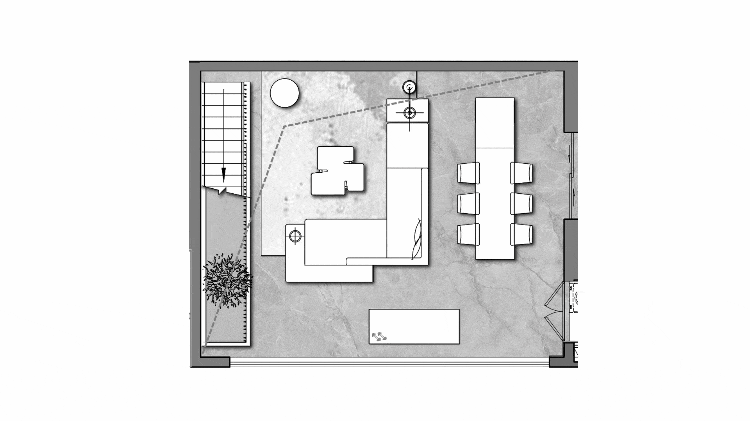 設(shè)計著重于提供一種可兼容多種生活方式的復(fù)合空間,滿足每個家庭對居住環(huán)境的不同構(gòu)想,這也是我們設(shè)計7.7*7.7m大尺度共享方廳的初衷,近60㎡的公區(qū)面積,可為多種生活模式提供場所。