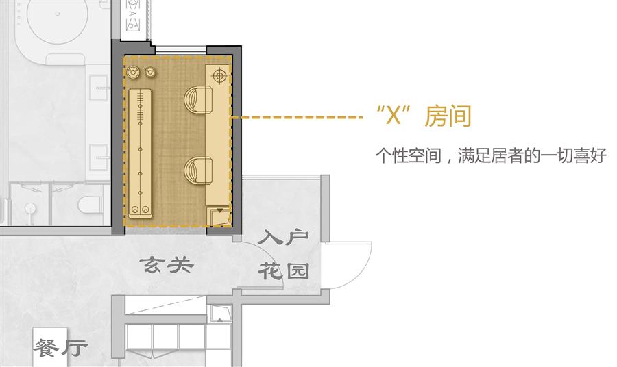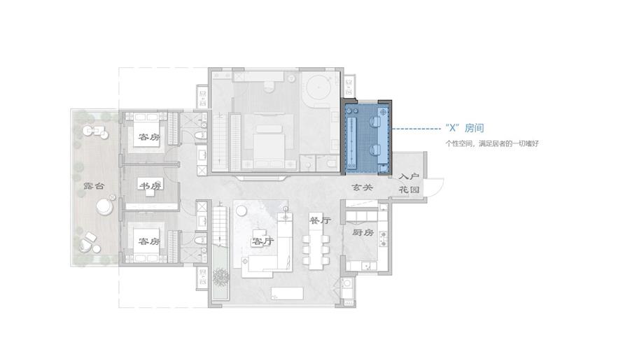“X”代表著無限可能,可隨心改造成任何你想要的樣子?!癤”空間的衍生體現(xiàn)了每個家庭對生活的美好期待。