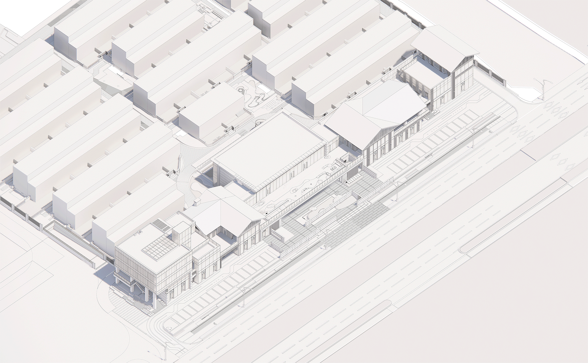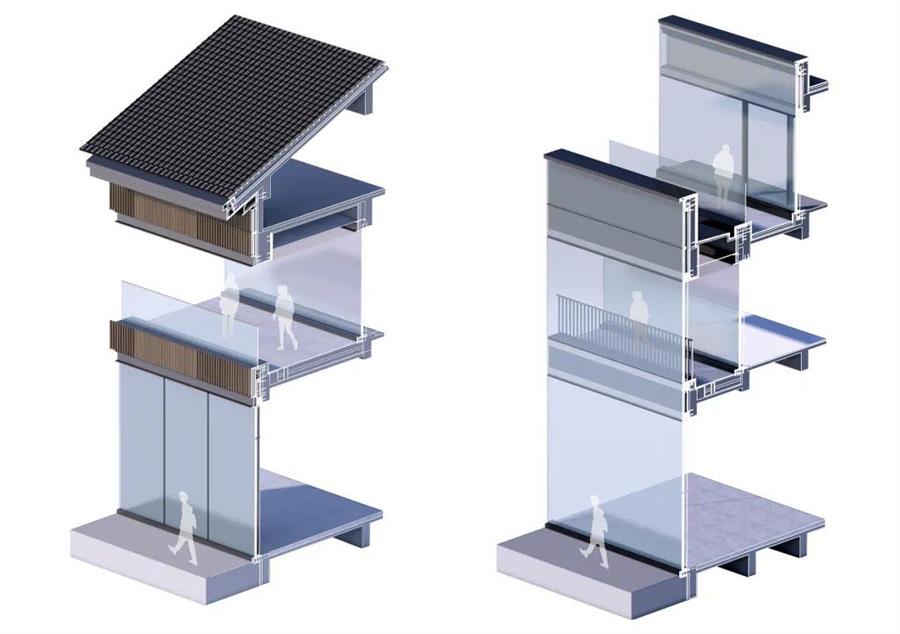 本項目試圖將傳統(tǒng)與現(xiàn)代元素結(jié)合——富有文化感的中式古典坡檐與現(xiàn)代時尚的通透立面通過設(shè)計推敲達以平衡,當(dāng)過去與現(xiàn)代交疊,給人以全新的感受與展現(xiàn)。