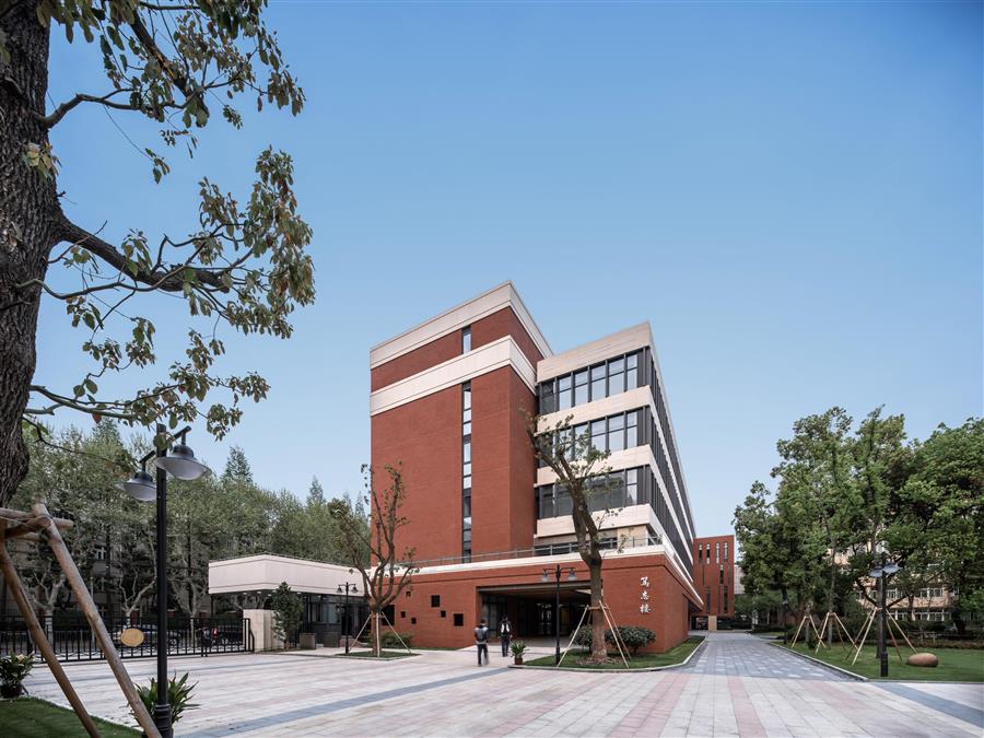 擁有近70年歷史的復(fù)旦大學(xué)附屬中學(xué),坐落于梧桐樹成蔭的國權(quán)路。本次工程拆除了校園內(nèi)5號(hào)樓(篤志樓)、階梯教室樓等危房,并整合周邊綠化場(chǎng)地進(jìn)行新建第二教學(xué)樓設(shè)計(jì)。新建第二教學(xué)樓建成后總建筑面積為12728㎡。其中地上建筑面積9326㎡,地下建筑面積3280㎡,建筑層數(shù)為地上6層、地下2層,建筑高度為24m。