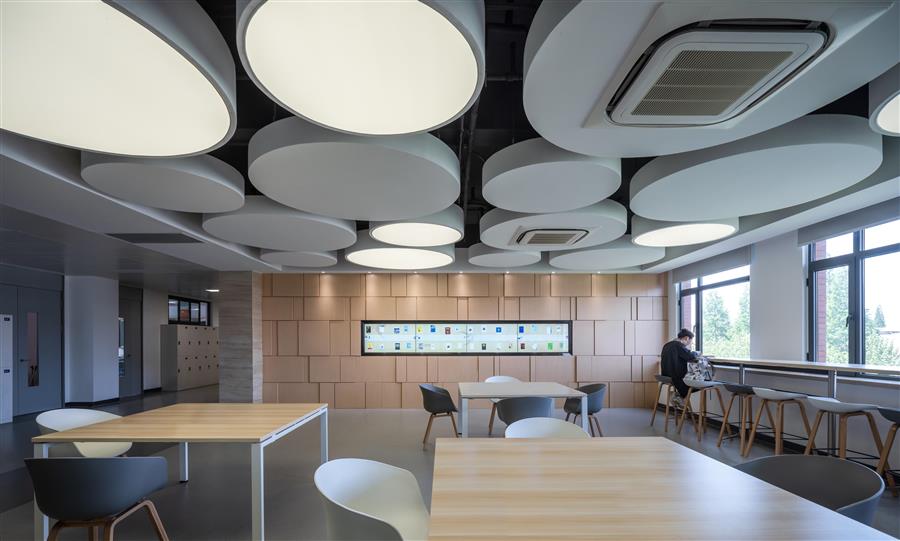 新建后的建筑,在擴(kuò)充了教學(xué)使用空間的同時(shí),更增加了多樣的綠化場(chǎng)地--花園式庭院、屋頂綠化平臺(tái)。建筑中處處可見兼具學(xué)習(xí)、娛樂與休憩功能的公共交流空間,為學(xué)生和老師們提供愉悅的學(xué)習(xí)環(huán)境。