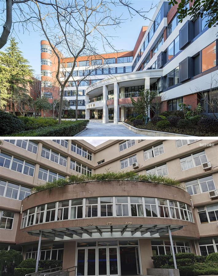 △南立面新舊對比,上為旦華樓,下為博學樓