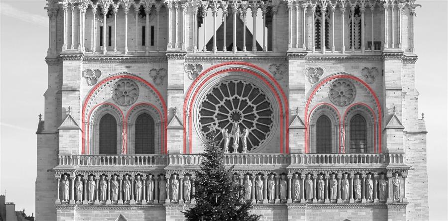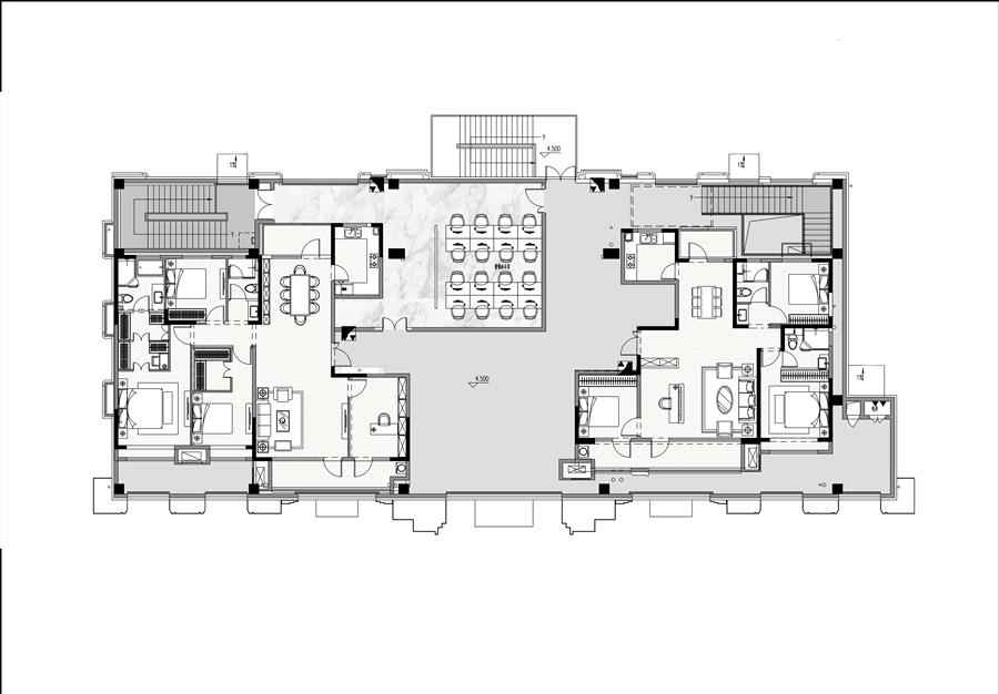 建筑提取都會風(fēng)格傳統(tǒng)的中間高,兩側(cè)低的經(jīng)典構(gòu)圖,利用經(jīng)典黃金比例,以對稱的形式進(jìn)行單元式組合,展示有序變化的邏輯美學(xué)。