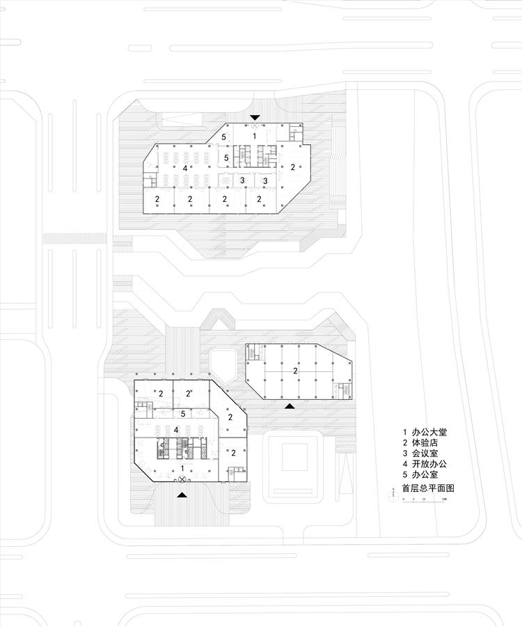 設計探索了現代辦公功能組織模式及辦公人員工作生活方式,遵循混合業(yè)態(tài)和彈性設計的原則,將商業(yè)、辦公、展示、配套等功能有機地結合在了一起。