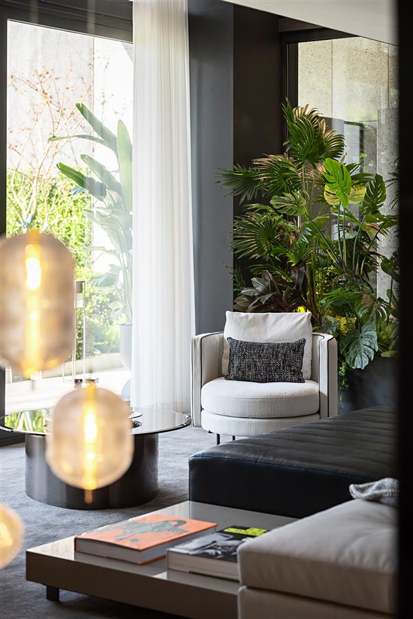 光影是生活的最佳陪襯,總是能賦予空間無與倫比的美學遐想。自然光穿透軒闊的落地窗,打破物理的障礙,制造生活空間的動靜變幻,隨時間的挪移而沉淀為內(nèi)外的一種默契互動。