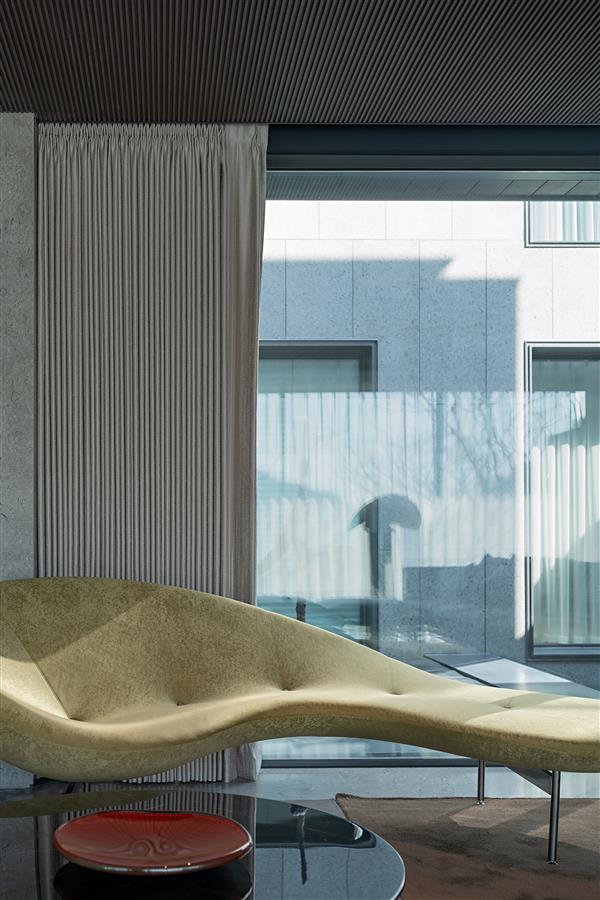 空間的行進動線,順沿“物境-意境-心境”的故事線索輾轉(zhuǎn)遞進,頗有層次地勾勒出屋主向往的棲心之境,那是“居住體驗-生活狀態(tài)-精神居所”的升華。翻過自然的序章,藝術(shù)篇章與生活態(tài)度的交融,自此深入每一隅空間畫面。