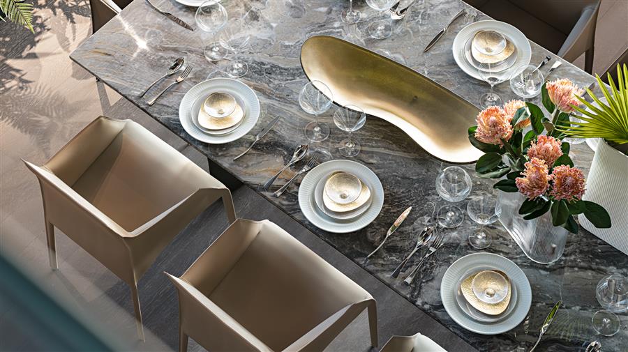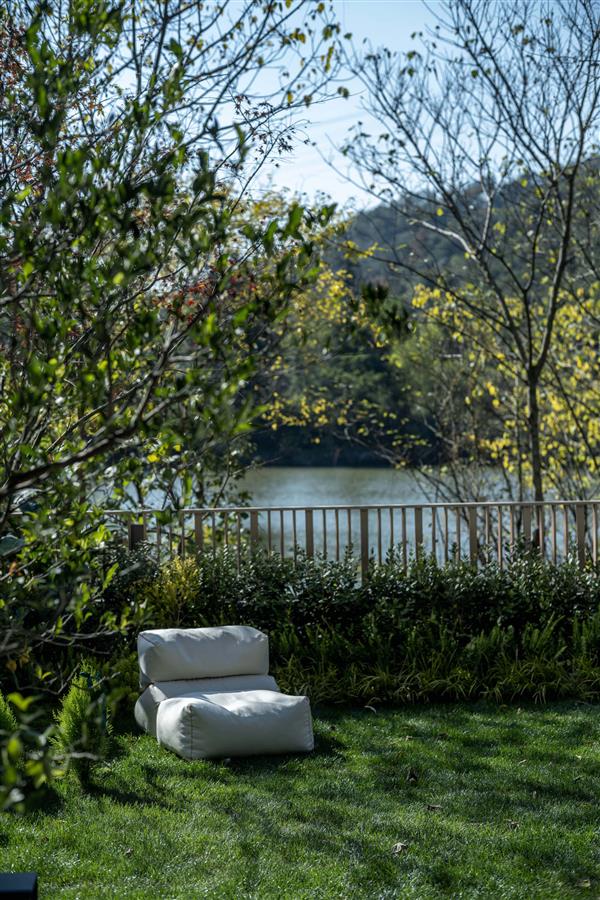 意大利品牌的B&B長椅與湖畔曲線遙相呼應,比利時藝術(shù)家Vrielinck.Ann的雕塑裝置《摘星》將藝術(shù)放歸自然之境,明黃與古銅、現(xiàn)代與古典兩相對比,形成一種完美對視的角度,讓藝術(shù)意境得以最大舒展,生活意味無限延長。